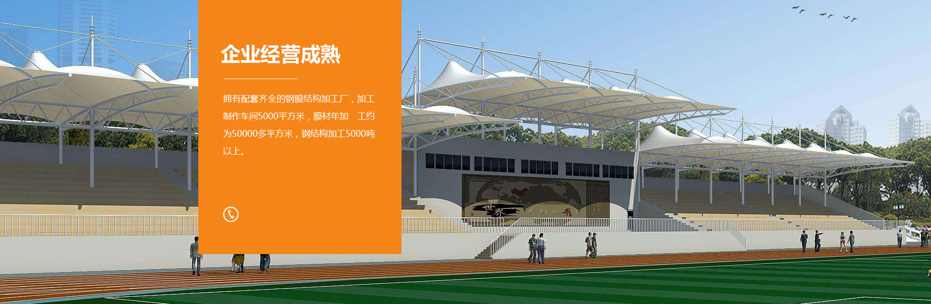 武漢科索爾膜結(jié)構(gòu)技術(shù)有限公司是專業(yè)大型武漢膜結(jié)構(gòu)公司,擁有配套齊全的鋼膜結(jié)構(gòu)加工廠,產(chǎn)品類型包括湖北武漢景觀膜結(jié)構(gòu),車棚膜結(jié)構(gòu),張拉膜結(jié)構(gòu)等。武漢膜結(jié)構(gòu)價(jià)格咨詢,武漢膜結(jié)構(gòu)設(shè)計(jì)施工,就選科索爾!棋牌開發(fā) 武漢科索爾膜結(jié)構(gòu)技術(shù)有限公司是國(guó)內(nèi)集研發(fā)、設(shè)計(jì)、生產(chǎn)、制作、安裝為一體的專業(yè)大型膜結(jié)構(gòu)公司,公司擁有配套齊全的鋼膜結(jié)構(gòu)加工廠,加工設(shè)施齊全,技術(shù)人員齊備,加工制作車間5000平方米,膜材年加工約50000多平方米,鋼結(jié)構(gòu)加工5000噸以上。公司工程技術(shù)部具備專業(yè)的施工管理能力和技術(shù)實(shí)力,人員配備合理,擁有鋼結(jié)構(gòu)和膜結(jié)構(gòu)工程專業(yè)性強(qiáng)、經(jīng)驗(yàn)豐富的管理和施工隊(duì)伍,機(jī)械設(shè)備齊全。 ...